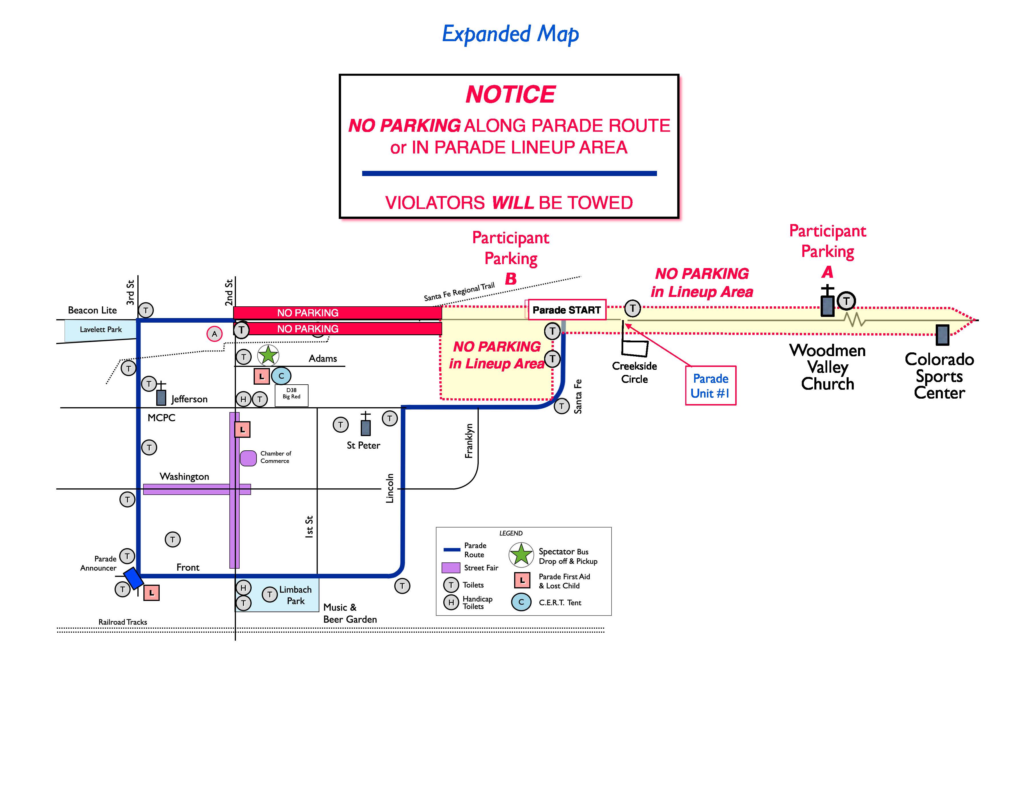 - ALL (yes ALL) parade participants will lineup on Old Denver Highway except as noted below:
