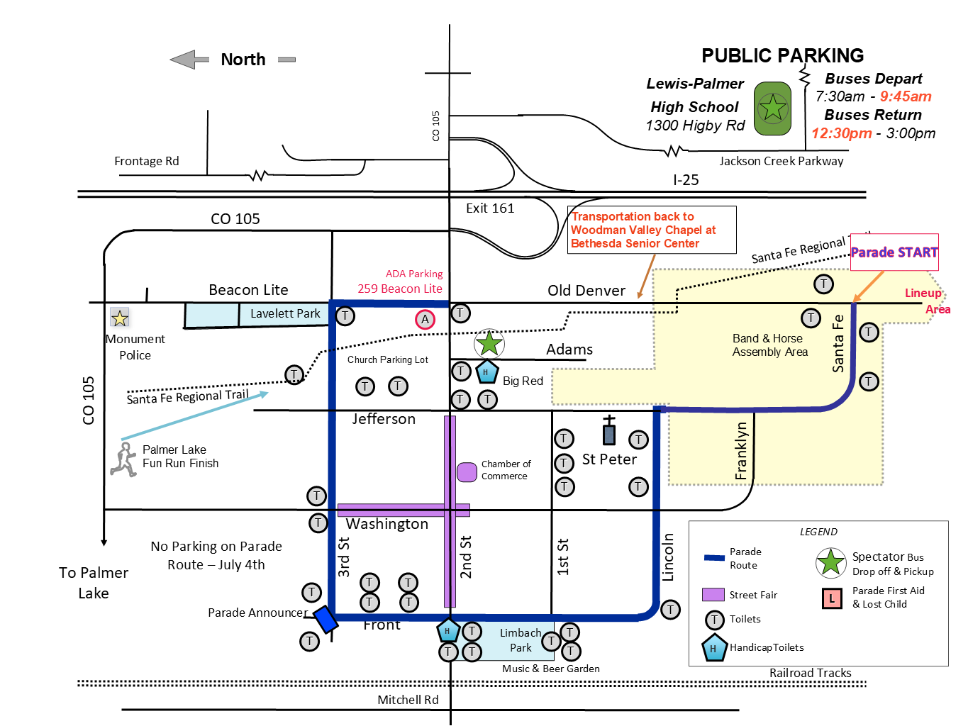 - If you parked in the Woodman Chapel parking lot and you need transportation back to it at the end of the parade, there will be a bus at Bethesda Gardens Senior Living to take you back.